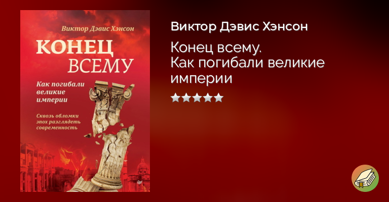 В книге «Конец всему» военный историк Виктор Дэвис Хэнсон рассказывает историю гибели четырех цивилизаций – от Античности и до завоевания Нового Света. Автор убедительно показывает, как быстро в условиях войны общество скатывается к варварству и полному уничтожению. В историях падения Фив, Карфагена, Константинополя и Теночтитлана он раскрывает трагедию, жестокость и безумие войны. Подчеркивая беспомощность побежденных и безумство массовых убийств, Хэнсон обращается к современным читателям с трезвым предупреждением: усвойте уроки прошлого, чтобы не повторить катастрофу вновь.