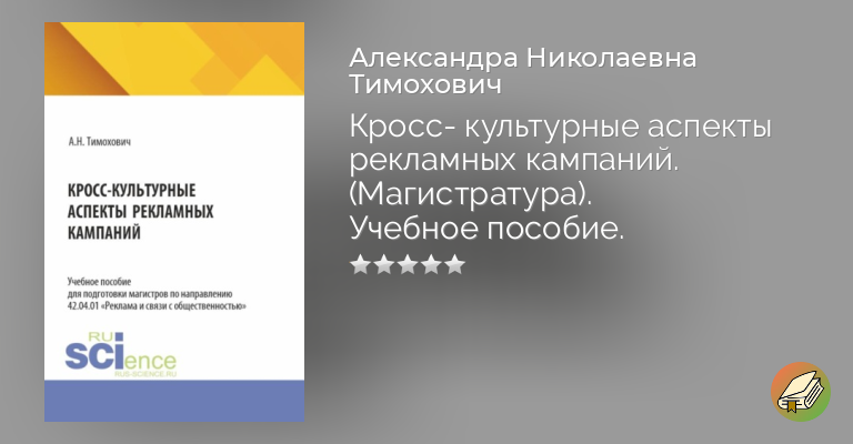 Рассматривается концепция кросс-культурной коммуникации, разнообразие коммуникационных процессов современности, кросс-культурные аспекты в глобальных и локальных культурах, кросс-культурные особенности в рекламной деятельности, специфика адапта-ции рекламных кампаний с учетом кросс-культурного компонента. Со-держит теоретический материал в формате лекционных слайдов, прак-тикоориентированные задания для домашних и семинарских работ, те-сты для проверки знаний, методические разделы, помогающие обуча-ющимся усвоить учебный материал и сформировать умения и навыки, необходимые для профессиональной деятельности. Соответствует ФГОС ВО последнего поколения. Для студентов магистратуры, обучающихся по направлению под-готовки 42.04.01 «Реклама и связи с общественностью».