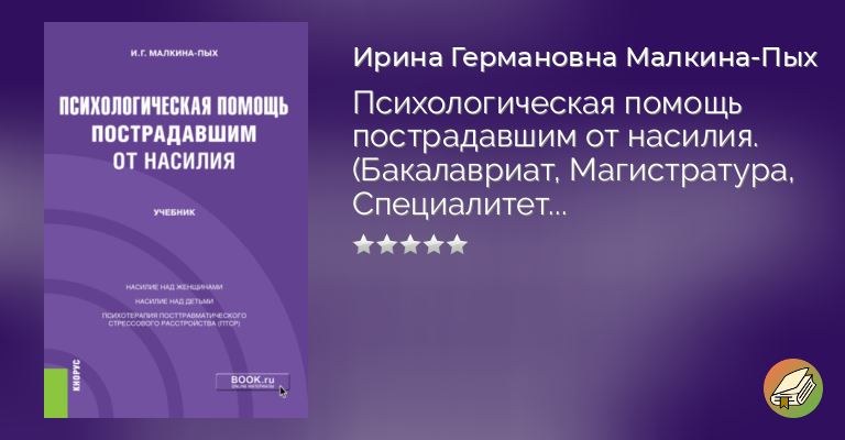 Рассматриваются такие ситуации насилия над женщинами, как домашнее насилие и изнасилование. Отдельные параграфы главы посвящены консультированию жертв домашнего и сексуального насилия, описанию групповых форм работы и тренинга позитивного воспитания и ассертивного поведения. Проанализированы различные формы насилия над детьми. Отдельный параграф посвящен описанию последствий насилия у детей. Описаны методы психологической работы с отдаленными последствиями экстремальных ситуаций, с посттравматическим стрессовым расстройством (ПТСР). Соответствует ФГОС ВО последнего поколения. Для студентов бакалавриата и магистратуры, обучающихся по направлению подготовки 37.04.01 «Психология», студентов специалитета, обучающихся по направлению подготовки 37.05.01 «Клиническая психология».