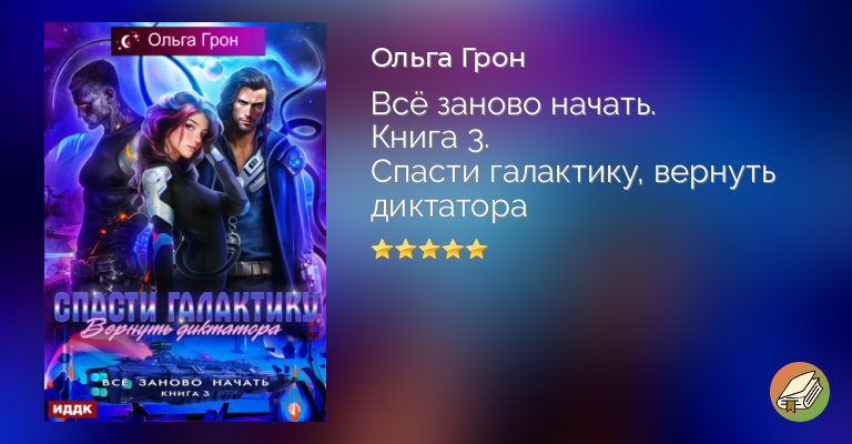 "Спасти галактику, вернуть диктатора" – роман Ольги Грон, третья книга цикла "Всё заново начать", жанр фантастический детектив, любовная фантастика, космическая фантастика.