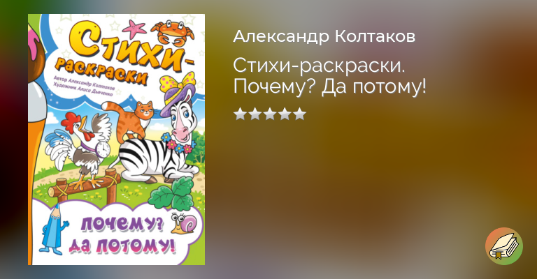 Почему гусь не боится прыгать в воду? Как Серёжка намочил ножки? Зачем телёнок ест цветы с клумбы? Ох, как много вопросов! И некоторые из них ты, дорогой читатель, уже задавал своим родителям. Но таких ответов, которые ждут тебя в этой книге, пока точно не слышал! Забавные стихи-почемучки предлагают иногда вполне очевидные, а иногда совсем неожиданные варианты ответов на простые вопросы. Все они обязательно вызовут улыбку, потому что автор книги превратил свои произведения в шутки. Помимо обычных стихотворений, тебя ждут поэтические загадки. Здесь искать ответы тебе придётся самому. Странички книги украшены картинками для раскрашивания. Они иллюстрируют истории, рассказанные автором, и дают тебе подсказки, чтобы было легче справиться с загадками.