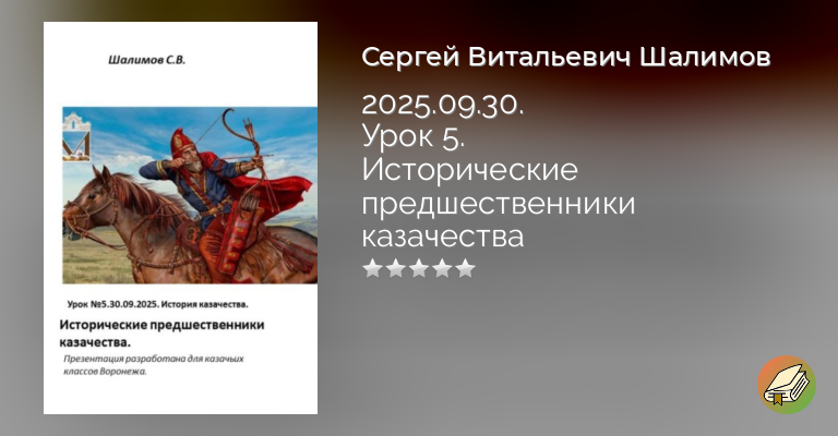 Читать книгу «2025.09.30. Урок 5. Исторические предшественники казачества» онлайн: