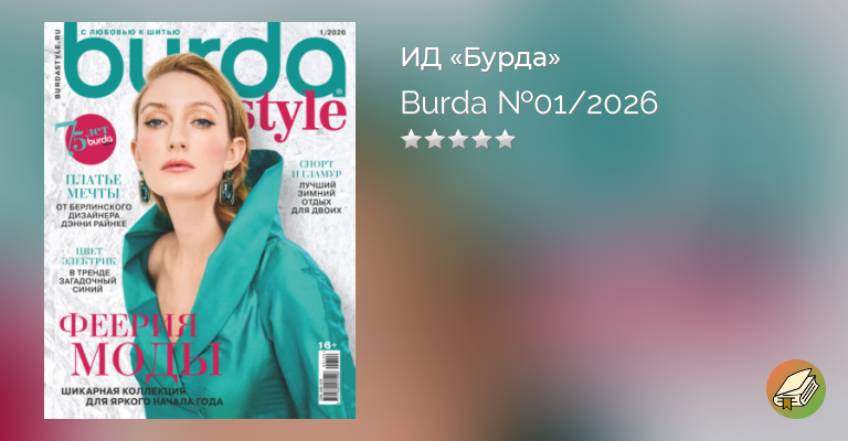 Секрет популярности журнала Burda (Бурда) в том, что благодаря ему каждая женщина может осуществить свою мечту одеваться модно и красиво. Журнал Burda – это европейская мода высокого класса. Издание с мировым именем, хорошо известное всем женщинам, которые хотят быть образцом безупречного вкуса для окружающих. На страницах журнала Burda – самые последние тенденции мировой моды, новости с европейских подиумов, советы по стилю и модные торговые марки. Каждый месяц – новая коллекция одежды от ведущих дизайнеров мира. (Электронная версия журнала не содержит выкроек. Приобрести выкройки можно на сайте http://burdastyle.ru/vikroyki/ )