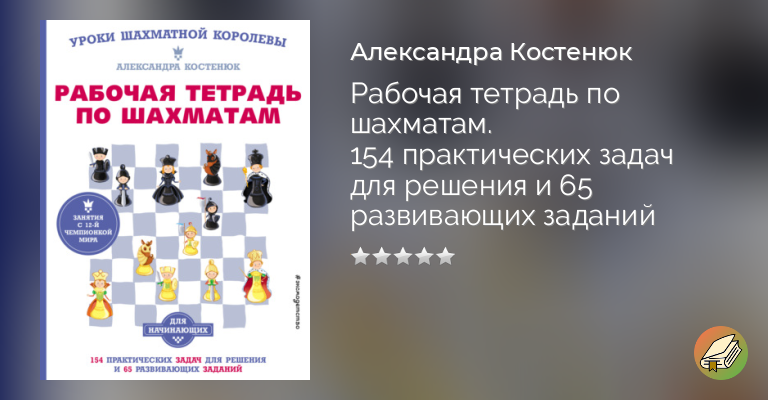 Рабочая тетрадь – отличное дополнение к «Учебнику шахматной игры» 12-й чемпионки мира Александры Костенюк. После изучения теоретического материала в учебнике дети смогут закрепить знания при решении упражнений задачника. В этом им будут помогать их ровесники – любопытный Митя и веселая Маша, а также покровительница шахматной страны Каисса. В книгу включены и досуговые задания, призванные развить внимание, мышление и мелкую моторику юных шахматистов. Издание можно использовать параллельно с любым другим учебником шахмат. Оно предназначено как для шахматных кружков, так и для домашнего обучения совместно с родителями.