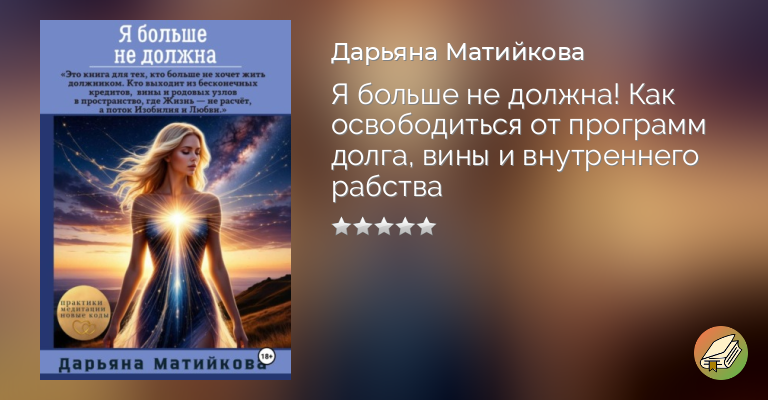 «Я больше не должна» – живая книга-проводник, в которой ты шаг за шагом возвращаешь себе свободу от родовых, кармических и социальных долгов, в том числе денежных.