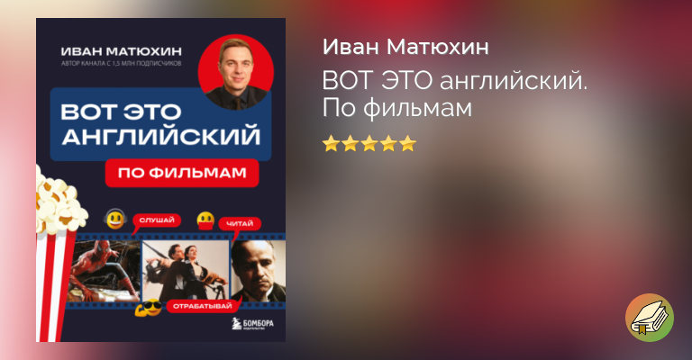 Учите английский с удовольствием и без зубрежки, а не по скучным учебникам! Хотите наконец понять, что говорят герои любимых фильмов, – и начать говорить так же? Эта книга – ваш билет в мир настоящего английского. Иван Матюхин, автор канала «ВОТ ЭТО английский» (1,5 миллиона подписчиков), превращает изучение языка в увлекательное путешествие по сценам из культового кино. Внутри вы найдёте 20 фрагментов из известных фильмов, пошаговый разбор каждой сцены, живую лексику, понятные объяснения, задания, мини-тесты и аудио по QR-кодам. Всё – для того, чтобы вы не просто запоминали слова, а учились понимать и говорить, как носители. Никакой занудной грамматики и выдуманных диалогов – только живой язык, который действительно используется в жизни. Удобный формат книги, плотная бумага и возможность делать пометки прямо на страницах делают обучение ещё комфортнее.