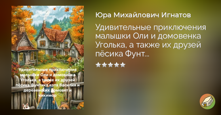 Эта книга об удивительных приключениях маленькой девочки Оли и её друзей пёсика Фунтика, кота Василия и обитателей деревни домовых и кикимор. Но где присвтствует добро обязательно рядом ходит зло, так и в книге есть злая крыса Грызюка, грызущая всё подряд и готовая разрушить жилище Уголька, а за забором бабушкиного дома ходит и хватает своим клювом всех подряд злой гусак Шип, чуть подальше, за высоким забором живёт злобный пёс Клык. Все эти нехорошие персонажи доставляют нашим друзьям много неприятностей. Но это ещё не все приключения Оли и её друзей, впереди ещё зима, Новый год, и кто знает что их ждёт в переди, какие истории и приключения произойдут у бабушки в деревне. Это очевидно вы узнаете в следующих главах.