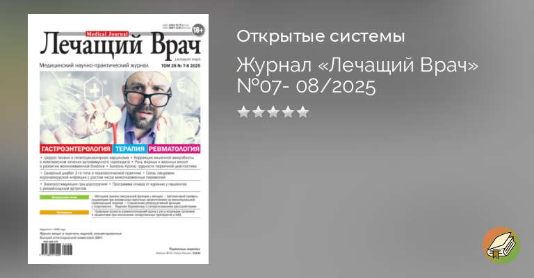 Цирроз печени и гепатоцеллюлярная карцинома в исходе хронического гепатита С. Клиническое наблюдение Роль микробиоты кишечника, короткоцепочечных жирных и желчных кислот в развитии желчнокаменной болезни Cахарный диабет 2-го типа в терапевтической практике: не всё так просто Система последовательного применения техник электростимуляции при дорсопатиях Модифицированная методика оценки сексуальной функции у женщин Особенности становления репродуктивной функции у девушек-спортсменок художественной гимнастики в Санкт-Петербурге Правовые аспекты взаимоотношений врача с регуляторными органами и пациентами при назначении лекарственных препаратов и БАД